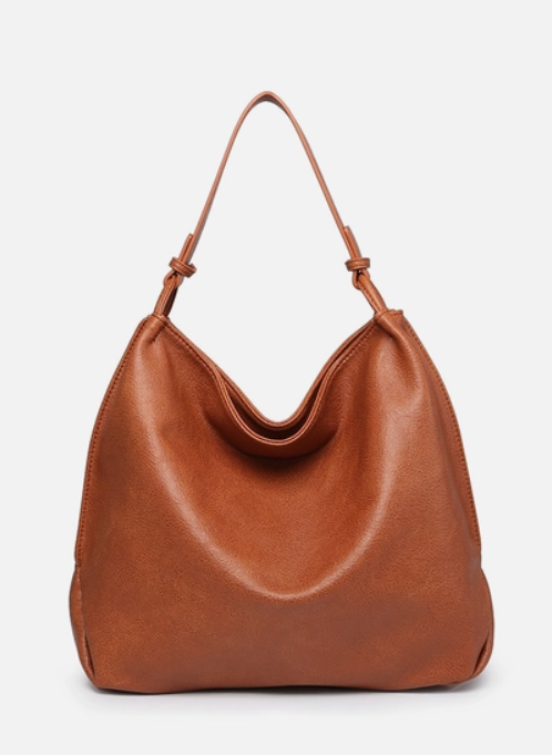 -Interior: Inner slip and zip pockets, inner zip compartment -Closure: Top zipper closure -Pockets: Back zipper pocket -Material: Vegan leather Dimensions: -Length: 13 inches -Height: 16 inches -Width: 5.5 inches