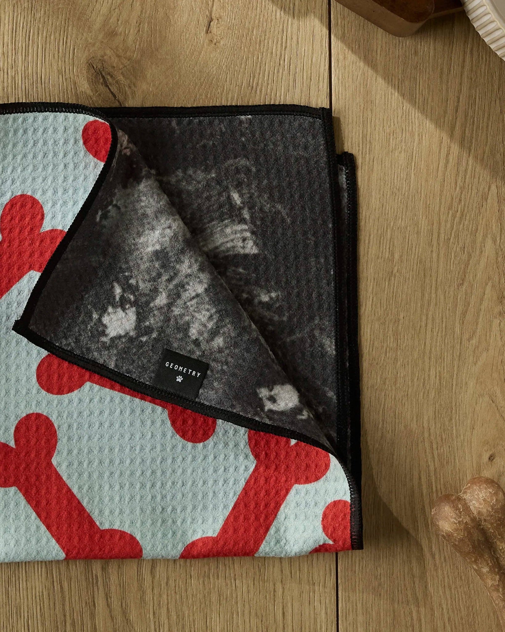 Paw Towel Life’s a little ruff. Let’s clean it up. Dirty paws are no match for our Paw Towel. Created from our signature Geoweave™ fabric for ultra-absorbency and quick-drying, this towel is your best friend’s new best friend. Compact and lightweight, it’s perfect for bath time, paw washing and on-the-go clean-up. SKU: DOG-PW-MF-yuletide-pup GTIN/UPC: 00840392764094 ... * ♺ Made from post-consumer recycled materials * 18" x 18" * Single-sided print ... Pet Responsibly. With its natural softness and ultra-absorbent weave, our Paw Towels are guaranteed to be your new favorite companion (besides your doggy, of course!) The best part? They’re also friends to the environment. Our towels are created from post-consumer recycled products and manufactured using less water than traditional methods, minimizing our carbon footprint. And due to its innovative weave, high absorbency and quick dry time, you’ll wash it less often, helping to minimize yours.